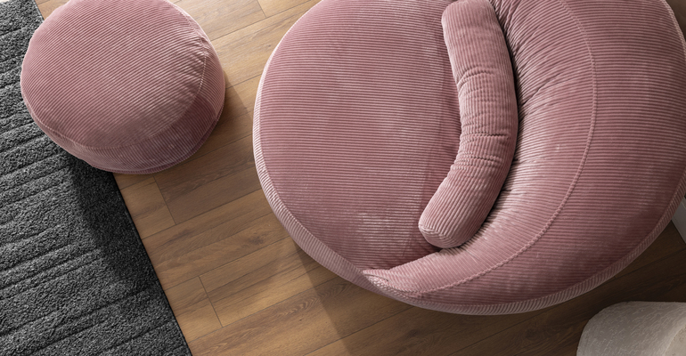 Der runde Sessel benötigt aufgrund seiner Form etwas mehr Platz als ein herkömmlicher Sessel.